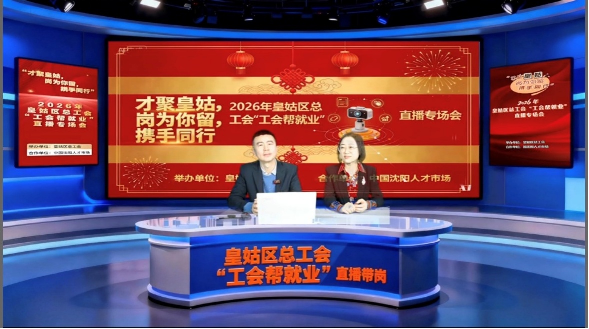 1月15日,辽宁省沈阳市皇姑区总工会联合中国沈阳人才市场,依托全总“就业帮扶云”平台开展专场直播招聘,以“屏对屏”互动打破时空限制,为辖区职工与企业搭建精准对接桥梁。